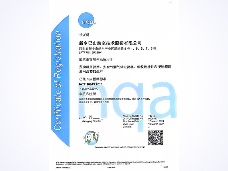 作為國防工業(yè)系統(tǒng)內(nèi)的專業(yè)化生產(chǎn)商,巴山公司深耕金屬絲、金屬網(wǎng)、鋼絲螺套、特種濾芯濾器、飛機(jī)尾翼除冰加溫元件及電源產(chǎn)品研發(fā)制造。產(chǎn)品深度融入航空航天、國防軍工全鏈條,廣泛應(yīng)用于飛機(jī)、飛船、火箭、導(dǎo)彈等尖端裝備,為國家國防事業(yè)筑牢基石。同時(shí),公司以技術(shù)優(yōu)勢輻射多領(lǐng)域,為航天、電子、核工業(yè)、新能源、汽車、環(huán)保等行業(yè)提供過濾、篩分、 屏蔽及緊固連接的一體化解決方案,推動產(chǎn)業(yè)技術(shù)升級。在質(zhì)量與管理體系建設(shè)上,公司已通過ISO9001/GB/T19001/GJB9001C軍民質(zhì)量管理體系、IATF16949汽車行業(yè)質(zhì)量體系ISO14001環(huán)境管理體系及IS045001職業(yè)健康安全管理體系認(rèn)證,以標(biāo)準(zhǔn)化運(yùn)營保障產(chǎn)品卓越性能。公司檢測試驗(yàn)設(shè)備齊全檢測能力行業(yè)領(lǐng)先,配備有激光測徑儀、絲網(wǎng)測徑儀、螺紋檢測儀、光譜儀、碳硫分析儀、強(qiáng)度試驗(yàn)臺、流阻試驗(yàn)臺、污染度等級在線清洗試驗(yàn)臺等高精度檢測試驗(yàn)設(shè)備。